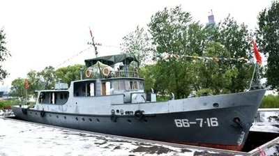 六、“ 66-716 ”艇 “ 66-716 ”艇,原名“ W506 ”,由安徽省芜湖造船厂制造,艇长 30 米,宽 5.5 米 ,航速为 14 节。 1966 年 7 月 16 日,毛主席乘坐该艇检阅了武汉市第 11 届横渡长江游泳大军,并留下了那张挥手致意的经典照片。当天毛主席以 73 岁的高龄再次畅游长江,共游了 1 小时 05 分钟。为纪念这难忘时刻,“ W506 ”艇重新命名为“ 66-716 ”艇,主要担负武汉长江大桥水域的守护职责,多次完成水上导航、外事接待、抢险救灾等重大任务,成为一艘英雄的战艇。“ 66-716 ”艇的服役时间应为 24 年,但由于是毛主席的座艇,以至于使其超期服役近 26 年。 2013 年经武警总部批准,“ 66-716 ”艇正式光荣退役。武汉市为了安排“ 66-716 ”艇,特建武汉横渡长江博物馆,该艇伫立在博物馆一侧,四周水光潋滟,恰似在水上航行,雄风犹在。当年毛主席使用过的泳衣、电风扇、竹制藤椅等珍贵文物,原封不动地保存其间,永久供大家参观。现在到艇上参观的人们络绎不绝,接受生动的爱国主义教育。