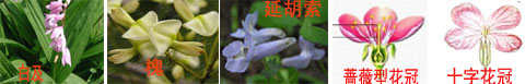 花是种子植物进行有性繁殖的主要器官,是种子植物固有特征之一。花是由枝变态而来的,是不分支的变态短枝。 (一) 花梗花梗: 又称为花柄,为花的支持部分,自茎或花轴长出,上端与花托相连。其上着生的叶片,称为苞叶、小苞叶或小苞片。 (二)花托花托:节间缩短的枝端,为花梗上端着生花萼、花冠、雄蕊、雌蕊的膨大部分。其下面着生的叶片称为付萼。花托常呈凸起、扁平、凹陷等形状, 主要有:盘状(柑桔)、圆柱状(木兰)、凸起如覆碗状(草莓)、凹陷呈碗状(桃)、倒锥形(莲)等。 (三)花被花被:包括花萼与花冠。 1、花萼:为花朵最外层着生的片状物,通常绿色,每个片状物称为萼片,有分离或联合之分。 2、花冠:为紧靠花萼内侧着生的片状物,每个片状物称为花瓣。花冠有离瓣花冠与台瓣花冠之分。 离瓣花冠:即花瓣彼此分离的花冠。花瓣上部宽阔部分,称为瓣片,下面狭窄部分,称为瓣爪。离瓣花冠从形状上又划分:(1)兰形花冠: 由3枚花瓣瓣组成 ,如白及。(2)蝶形花冠: 花瓣5片,常见有旗瓣、翼瓣、龙骨瓣等,花瓣上部宽阔部分,称为瓣片,下面狭窄部分,称为瓣爪 ,如豆科植物、槐等。(3)十字花冠: 花瓣4片, 十字形排列 ,如油菜花。(4)蔷薇型花冠: 花瓣 5片或更多,如蔷薇。(5)距形花冠:如延胡索。 合瓣花冠:即花瓣彼此联合的花冠。花瓣联合的下方狭窄部分称为花冠管部,上方宽阔部分称为花冠舷部,花冠管部与花冠舷部交会处称为花冠喉部,而花冠舷部外侧未联合部分则称为花冠裂片。从外形上,合瓣花冠又划分: