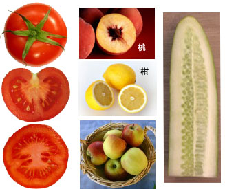 (一)浆果:浆果属于单果,外果皮薄,中、内果皮肉质多汁。浆果的一枚果实中常有许多种子。浆果的萼片宿存,与果蒂相连接。如番茄、茄子、葡萄等。