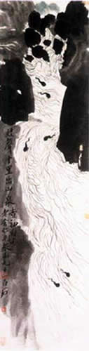 一次,老舍先生给齐白石出了一个《蛙声十里出山泉》的题目,请他老人家依题作画。白石老人只以极简括的笔墨勾出山溪和顺溪水游出的一群小蝌蚪,却没有青蛙。蛙在何处?这就给欣赏者提供了一个深远的意境和广阔的想象余地。既然看到了小蝌蚪,就一定能找到蛙鸣的。显然,这里作者简约切题,采用了一种“藏笔”的艺术,以露见藏,藏为露显。这幅画如果不这样构思,直接画一群青蛙在山泉边,鼓腮帮子瞠目鸣叫,读者的思维活动也就不怎么活跃了,甚至还会感到兴味索然。