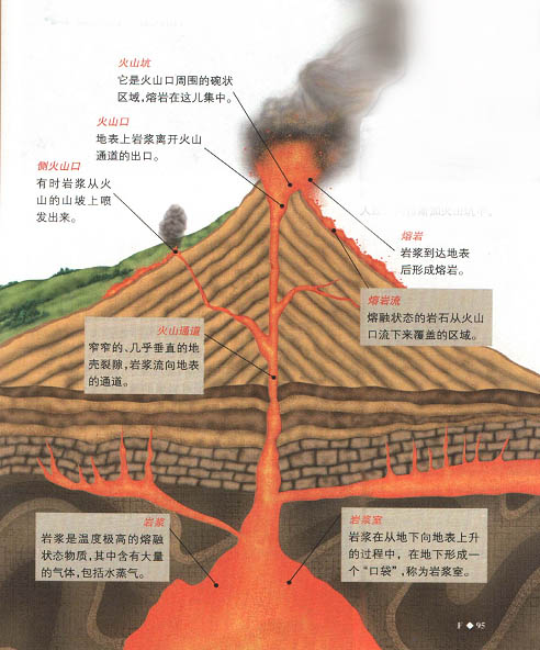 有时岩浆会突破地壳向外发一猛烈的喷发。这种