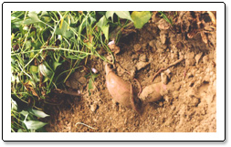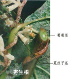 三、寄生根:有寄生习性植物的根, 着生于其它寄主植物的地上茎干或根部,并有吸盘深入寄主体内以吸取养料。如菟丝子本身不能进行光合作用,必须藉根侵入寄主豆科植物组织中,以吸收其生长发育所需的水分及养分。