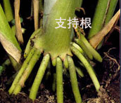 (1)支持根:支持根是从地上茎干基部长出而着生于地下,有支撑植物体直立的作用。像玉米从节上生出一些不定根,伸入土中,继续产生侧根,成为增强植物体支持力量的辅助根系。