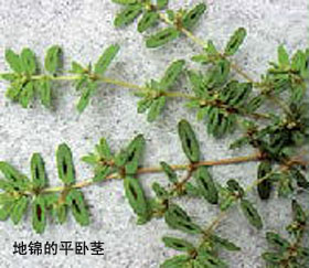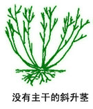 平卧茎通常草质而细长,平卧地面向四周蔓延生长,但与匍匐茎不同的是:一般节间较短,节上通常不长不定根,故植株蔓延的距离不大,如荣获、地锦。
