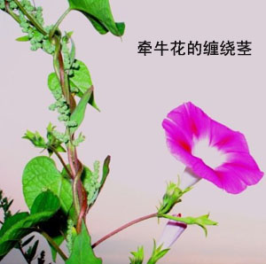 (1)左旋转式 ,即反时针方向缠绕,如牵牛花、葛、菜豆等;
