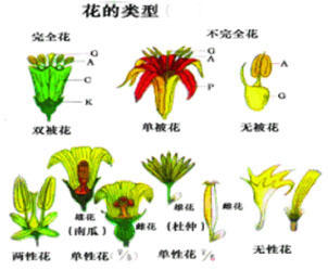 花的类型 1.从组成划分有: (1)完全花: